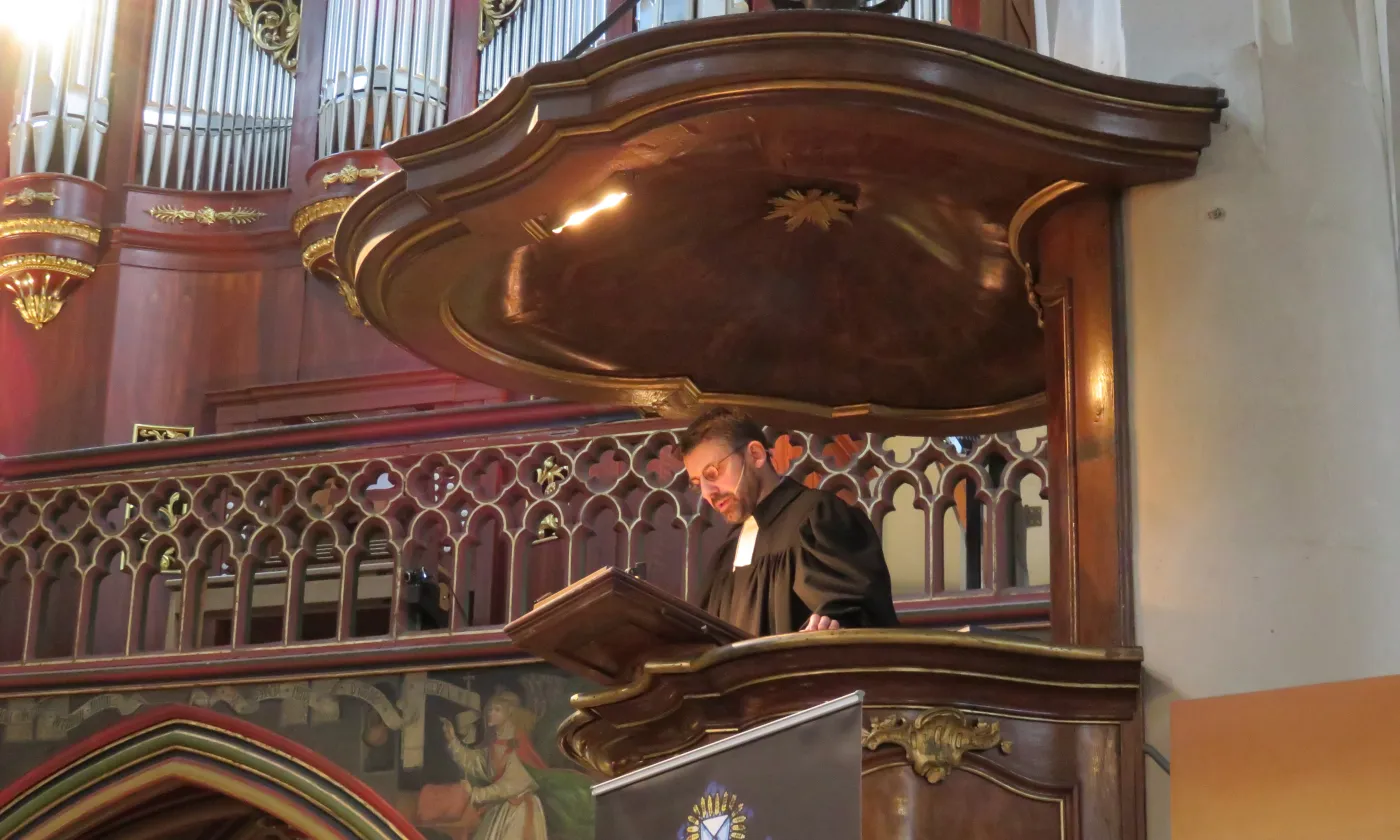 LV<div style="color: white;background-color: rgba(54, 171, 224, 0.5);"> Les délégués adoptent la nouvelle constitution</div> LV<div style="color: white;background-color: rgba(54, 171, 224, 0.5);"> Les délégués dans l'église française de Berne</div> LV<div style="color: white;background-color: rgba(54, 171, 224, 0.5);">Esther Gaillard et Daniel Reuter</div> LV<div style="color: white;background-color: rgba(54, 171, 224, 0.5);">Gottfried Locher en chaire</div> Previous Next églisesApprobation de la nouvelle constitutionLaurence Villoz19 décembre 2018Les délégués de la FEPS célèbrent l'adoption de la nouvelle constitution.