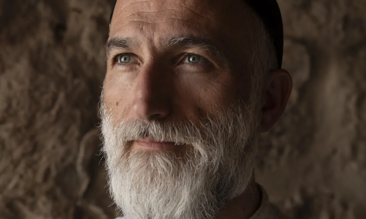 Le père Jihad Youssef, supérieur de la communauté monastique syriaque catholique Al Khalil, devant l'église du monastère de Deir Mar Musa al-Habachi. Mars 2025